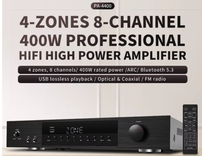 4 Zones/ARC/BT/USB(DAC)/Optical/Coaxial/AUX/CD/Mic/FM