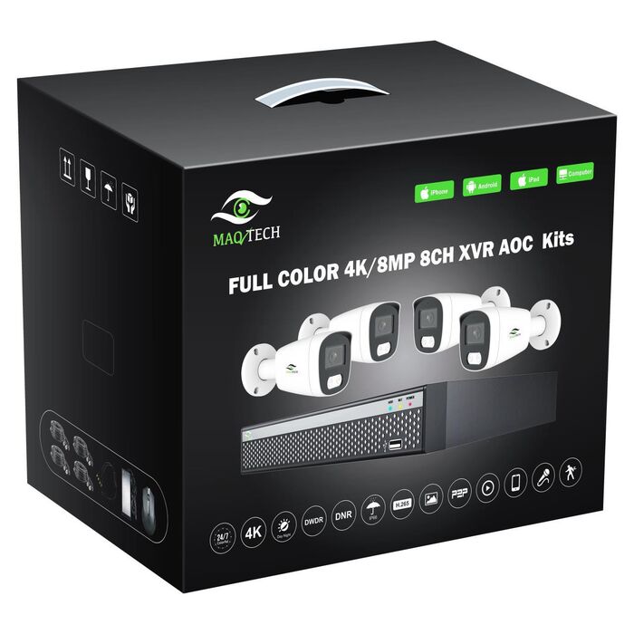 קיט 4 מצלמות 8 מגה 4K כולל 4 מצלמות צינור 8M MAQ TECH כולל 4 כבלים ודיסק 1T מערכת אבטחה
