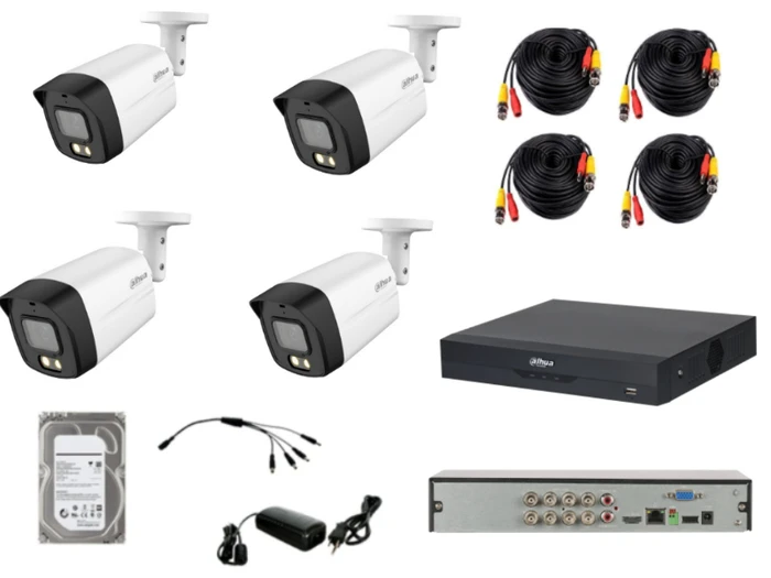 קיט 4 מצלמות אנלוגי DAHUA 5M כולל מכשיר הקלטה כבלים ודיסק 1 טרה