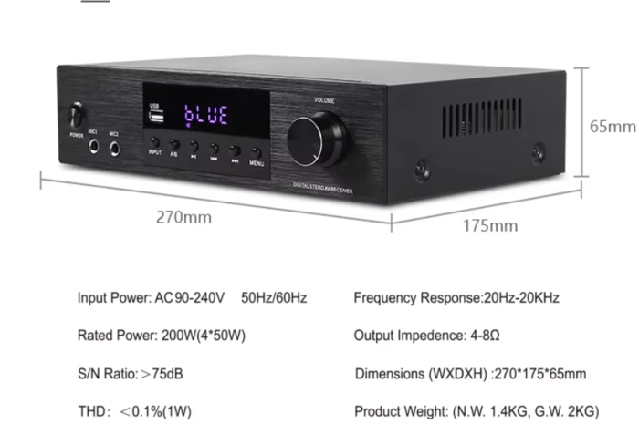 Bt5.0/usb/phono/dac/אופטי/קואקסיאלי/aux/cd/fm/2 xmic