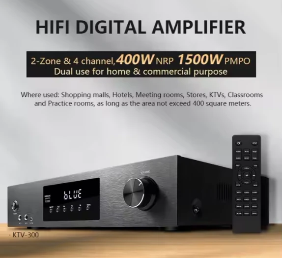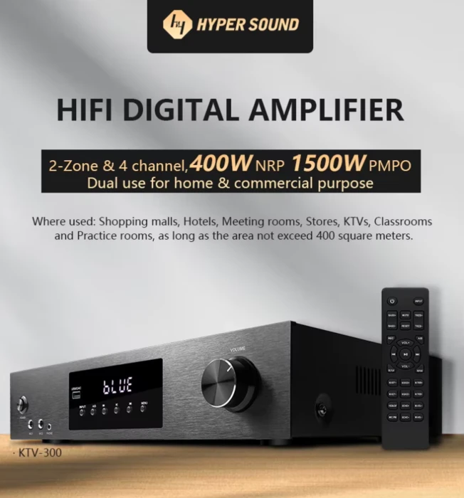 מגבר קול HYPER SOUND KTV-300 ל 4 ערוצים ו 2 אזורים 400W