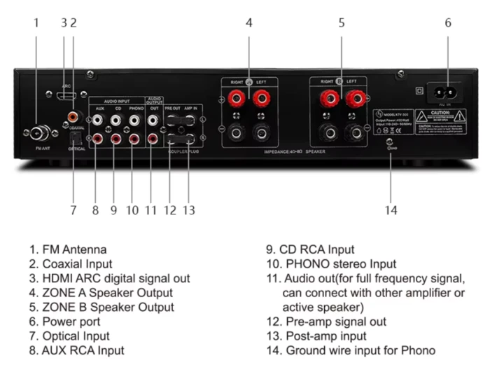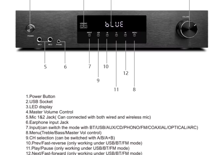 Bt5.0/usb (dac)/קשת/פונו/אופטי/קואקסיאלי/aux/cd/fm/2 xmic
