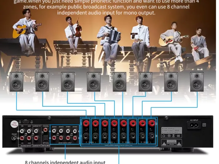 High Power D Class 4-Zone 8-Channel Multi-Zones Digital Audio Amplifier Connect Ceiling Speakers